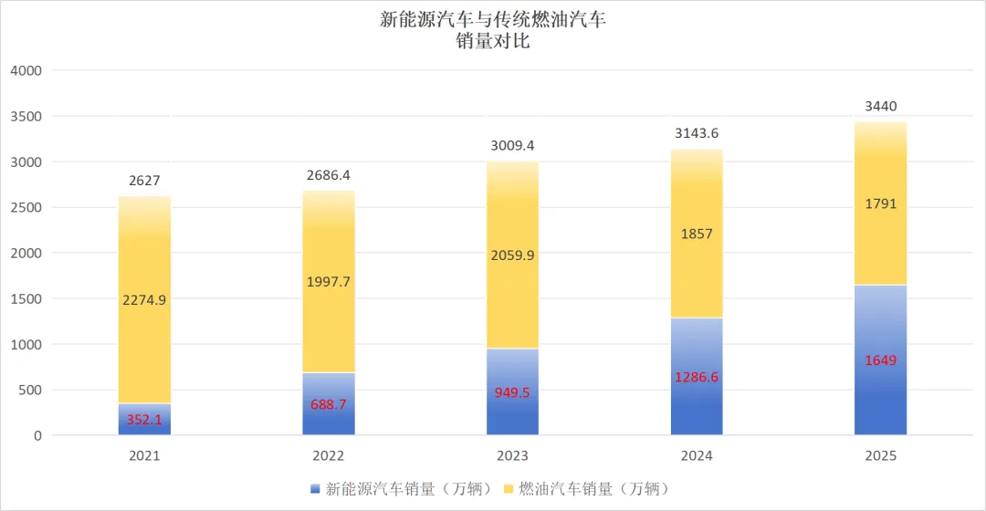 2025年,新能源汽车产销分别完成1662.6万辆和1649万辆,同比分别增长29%和28.2%,新能源汽车新车销量达到汽车新车总销量的47.9%,较去年同期提高7个百分点。