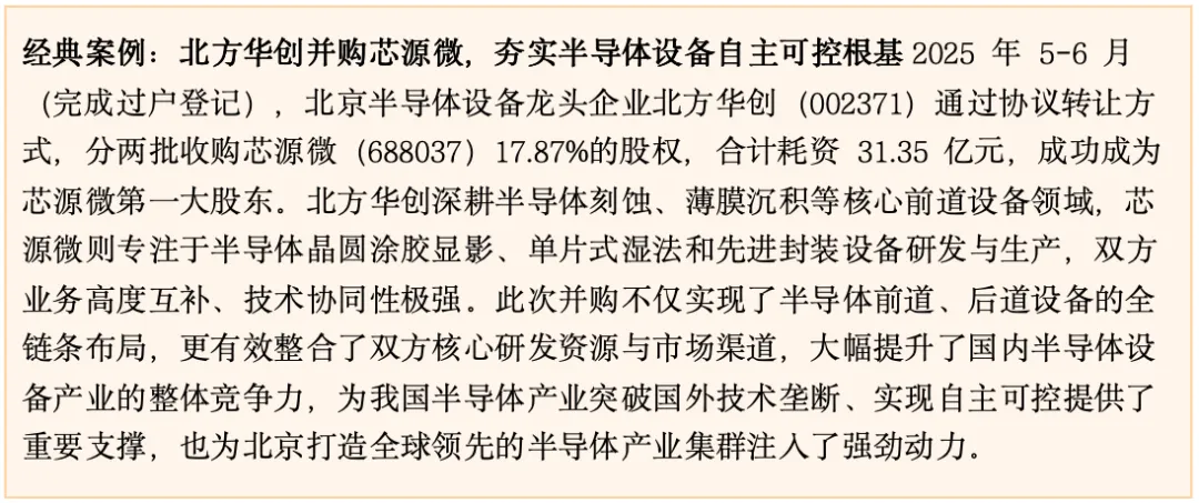 2025年,北京上市公司并购重组案例亮点纷呈,其中北方华创并购芯源微的交易,成为硬科技领域产业整合的标杆典范,充分彰显了首都在突破核心技术“卡脖子”瓶颈、推动产业自主可控方面的责任与担当。
