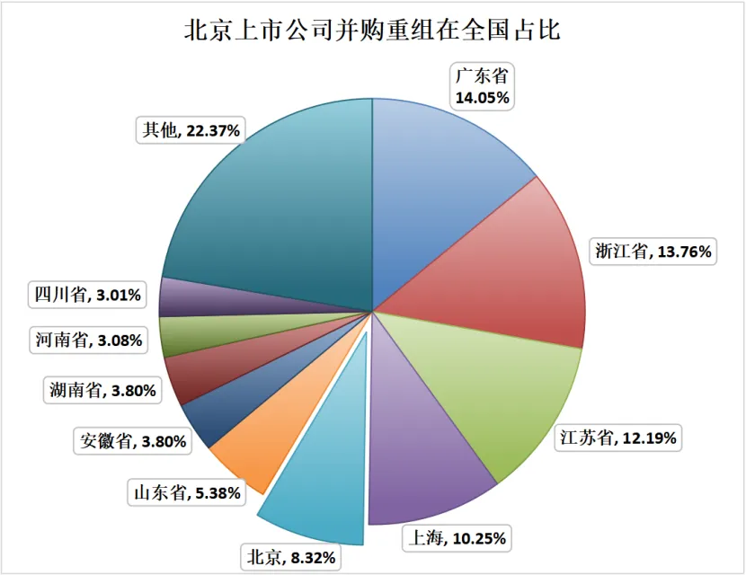 从上市公司并购重组全国占比来看,2025年北京上市公司并购重组事件116起,占全国总量(1395起)的8.32%;2024年北京上市公司并购重组事件128起,占全国总量(1292起)的9.91%。尽管数量占比略有调整,但始终稳定在8%以上的高位,持续巩固了北京在全国上市公司并购重组市场的核心地位。从规模影响力看,2025年北京上市公司并购重组交易总价值较2024年增长372.76%,增速远高于全国平均水平,交易规模的大幅跃升,充分体现了北京资本市场高效的资源配置能力与深度的产业整合能力。其在硬科技企业培育、重大产业整合、金融服务实体经济等方面的成熟经验与实践路径,为全国资本市场建设提供了可复制、可推广的“北京样本”。