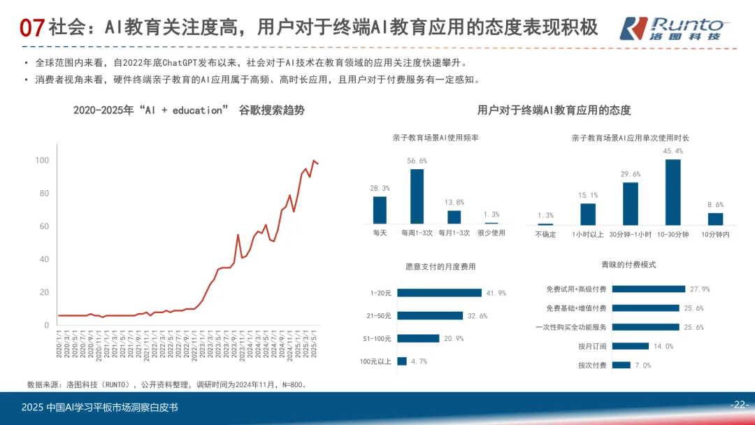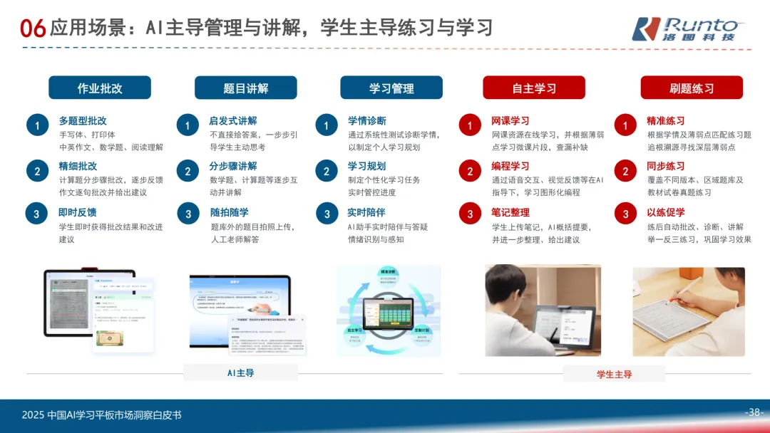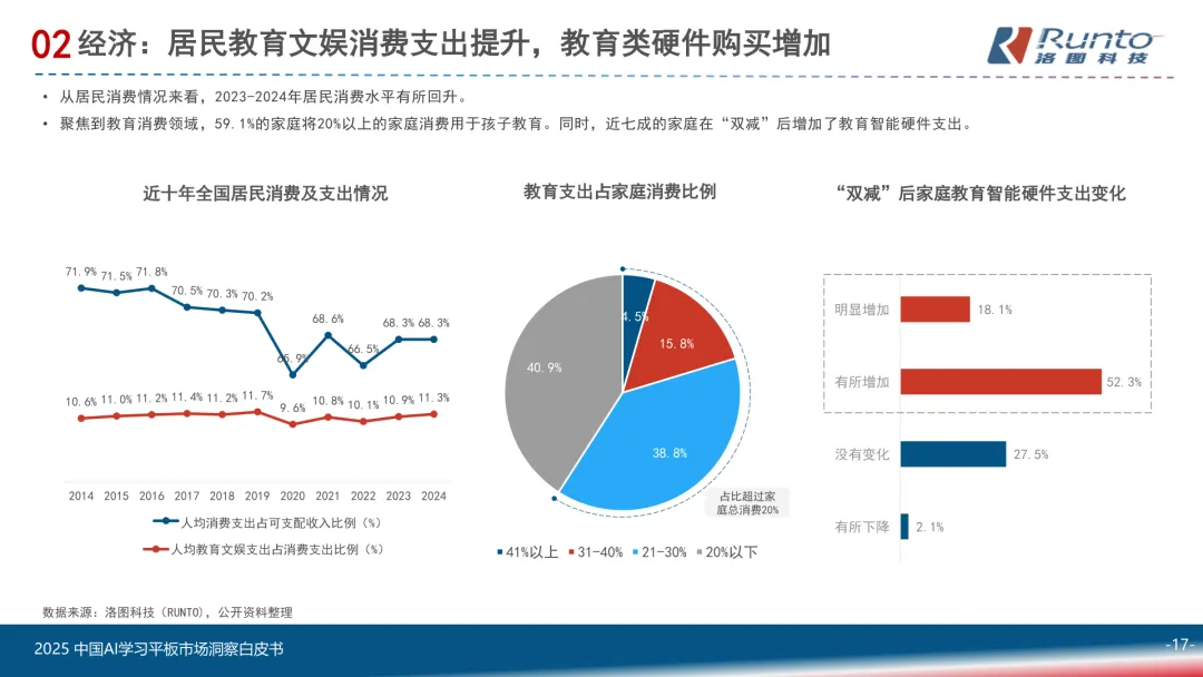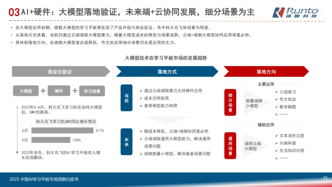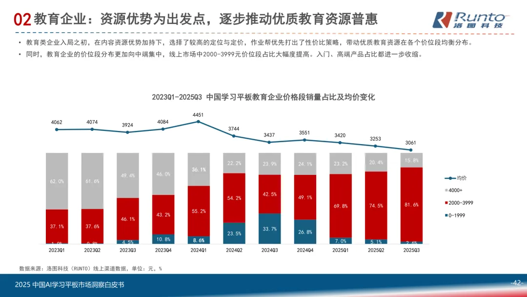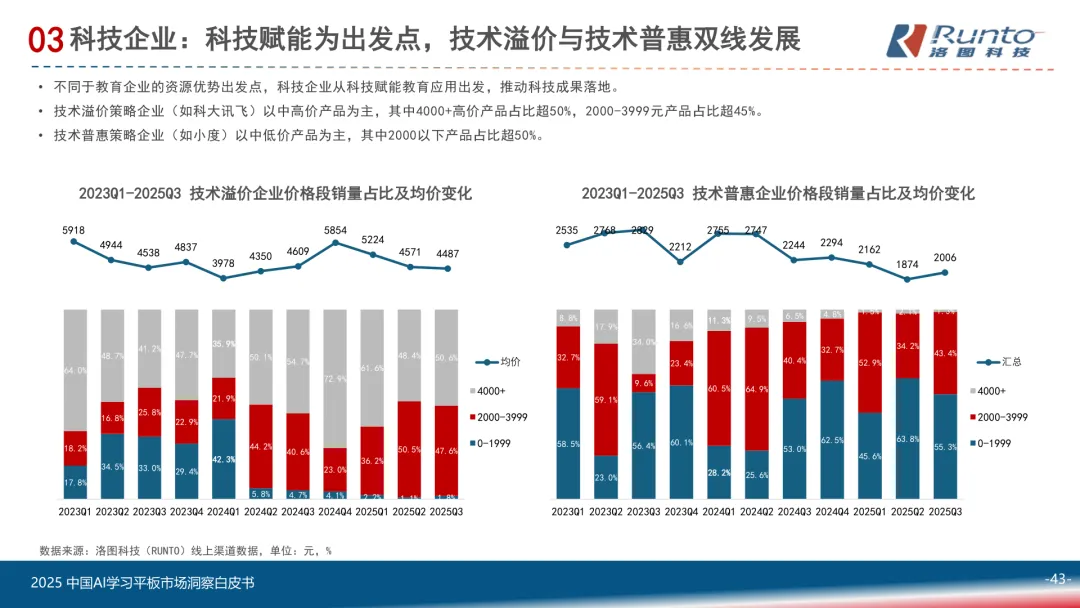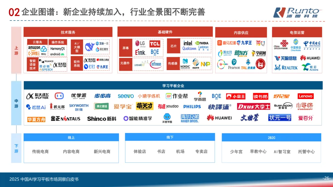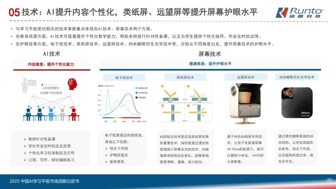 导读:AI 技术与教育的深度融合推动中国 AI 学习平板市场快速发展,2025 年市场销量预计达 582 万台,AI 渗透率持续提升。政策支持为市场发展提供有力保障,学习平板被纳入国补目录,多地推出购新补贴政策,教育数字化战略进一步明确其核心载体地位。市场呈现多元发展特征,2000-2999 元成为主流价格段,教育企业与科技企业共同主导市场。产品以个性化学习为核心,整合 AI 精准诊断、智能答疑、护眼技术等功能,通过通用大模型与教育垂类模型融合,实现从知识传授到能力培养的转型。线上内容电商与线下体验店、AI 智习室形成多元渠道布局。未来,市场将向场景细分、形态创新与生态融合方向演进。学龄段覆盖向成人职业教育延伸,便携形态与多硬件协同生态逐步成型,预计 2028 年市场规模将突破 800 万台,AI 渗透率超 96%,持续推动教育公平与效率提升。