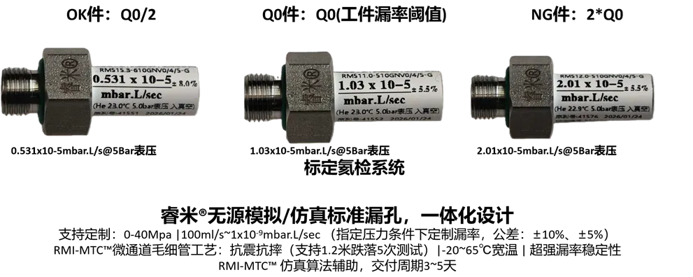 ·Q0:____ mbar·L/s @ ____ bar @ ____%He @ 温度____℃(范围)。·Q0允差:____(示例:±10%);必须提供证书编号/标定工况/有效期。·OK:0.5Q0;NG:2Q0;建议以假件形式交付并明确接口与密封方式。7.2 同浓度基准与变更控制