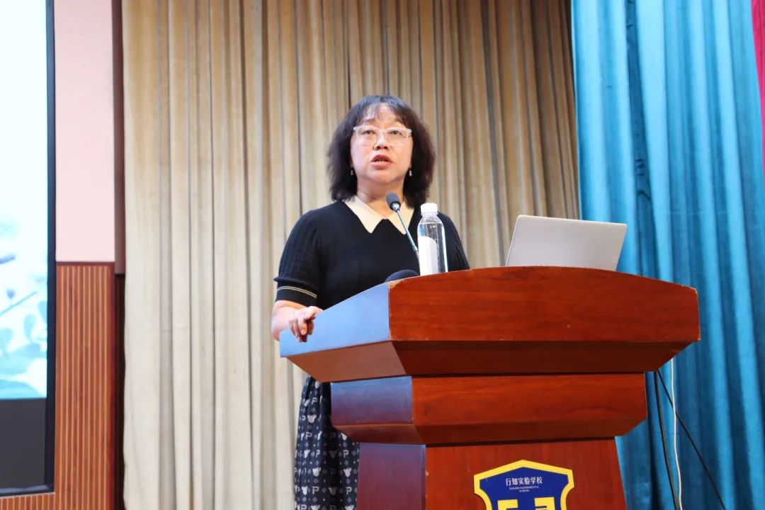 上午,由青岛平度行知实验学校副校长赵旻做《擦亮“四Jing”德育品牌,培育新时代阳光少年》的专题讲座。她首先解读了我校德育品牌的内涵,即“静、净、敬、竞”,分别强调纪律、卫生、交往、学习四个方面。其主旨分别是静能生慧,净能生美,敬能生德,竞能生优。接着,赵校长又为我们解读了德育品牌之“品”在何处,在这一部分提到的几个关键词,如真诚、唤醒、细节、校本、文化、融合等,发人深省。最后,赵校长从德育品牌之管理的力量,结合具体的生活实例,为老师们解读了做好德育管理的基因密码,即精细+实效、创新+层次、规范+仪典,给人留下深刻的印象。赵校长以“一群人、一件事、一条心、一起拼、一定赢”为结语,赢得了会场老师们的热烈掌声。