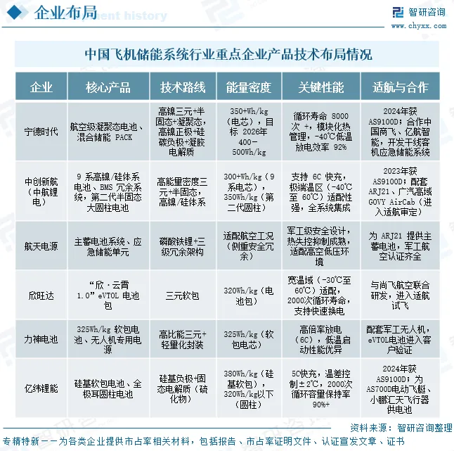 中国飞机储能系统行业重点企业布局