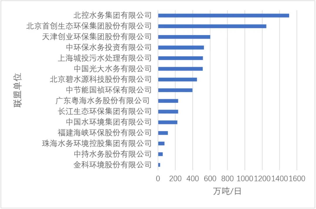 图3 联盟单位已投入运营城镇污水处理规模