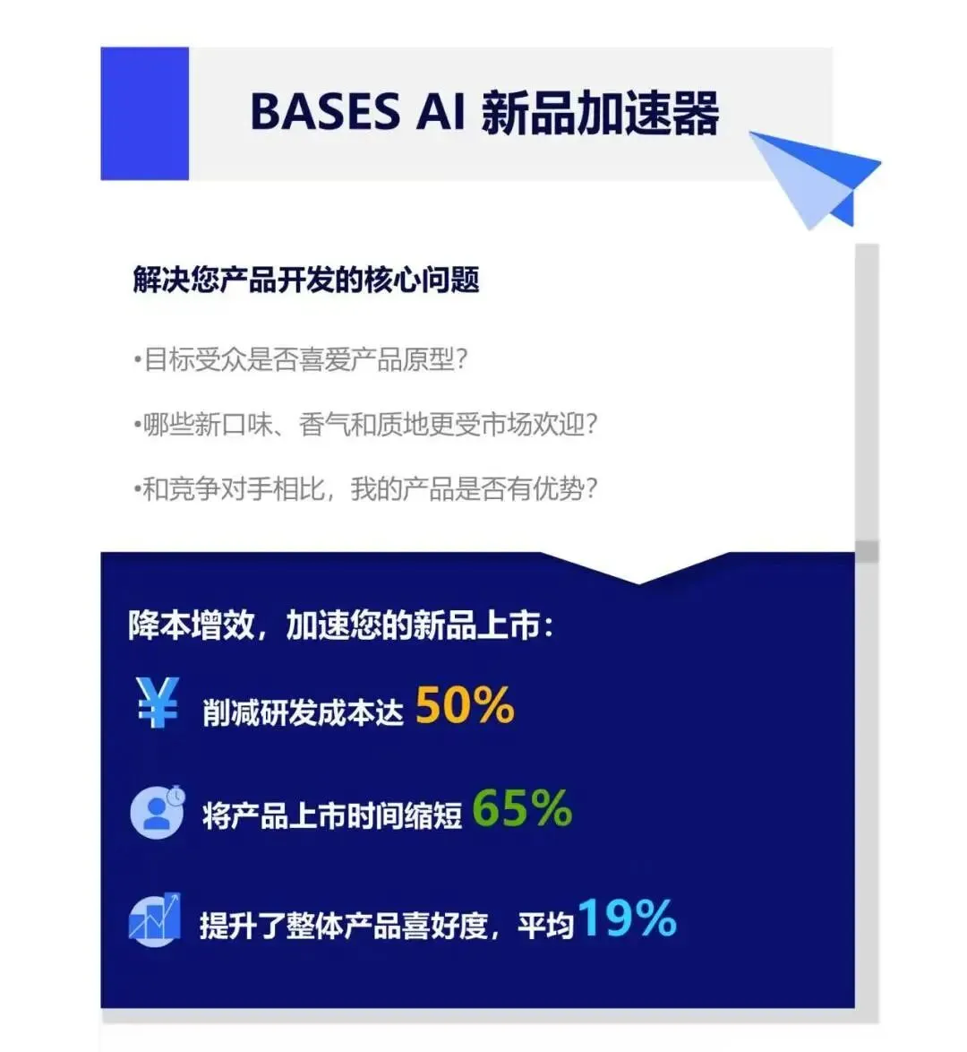 BASES AI新品加速器深受头部快消企业认可,中国版现已上线,欢迎垂询尼尔森IQ顾问,了解更多最新本土化升级信息和产品优势。