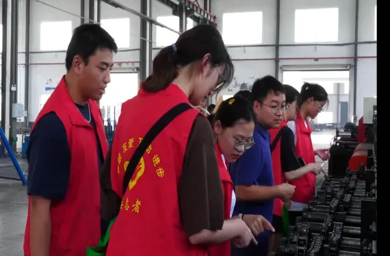 “笃行计划”实践团队在调研乡村振兴产业时,了解临河镇企业有项目攻关和人才等需求,立即反馈学院,学院副院长刘萍带队赴临河镇产业园,走访江苏杰特机电科技有限公司等多家机电企业。在校地企三方座谈会上,团队就人才培养、学科建设、实习实训和科研攻关等方面进行了深入交流,积极献智献策。