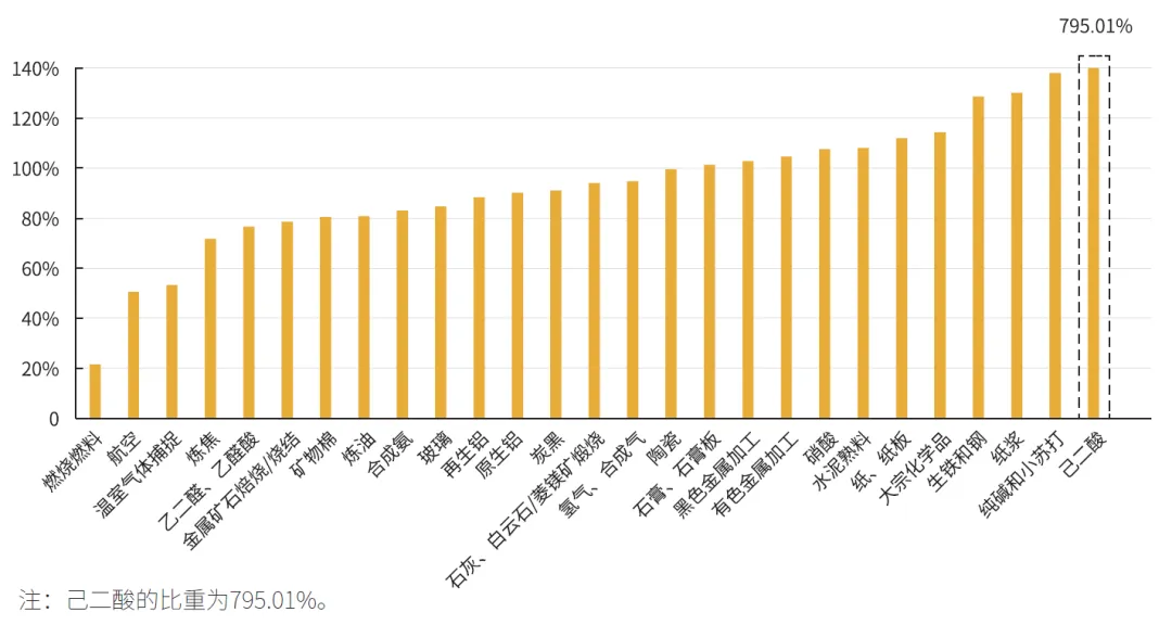在第三阶段,碳减排高泄漏风险行业的配额全部免费发放,涵盖能源、矿物开采、化工、钢铁、水泥、铝和有色金属等。根据欧盟统计,除发电行业(统计为“燃烧燃料”)外,绝大多数行业2013—2019年累计获得的免费配额占报告排放总量的比重均超过80%,近一半行业超过100%(见图3),考虑第一、第二阶段的配额结转,非发电行业几乎未直接承担欧盟碳市场框架下温室气体减排成本。从减排效果看,第三阶段大部分减排成果由发电设施完成,发电设施排放总量下降2.96亿吨,占欧盟碳市场总减排量的比重超过100%;合成氨(化肥)、化学品、有色金属、黑色金属、铝、水泥等相关行业2019年的排放总量与2012年相比有所增长,其中氢气相关行业的排放量上涨幅度达到1811.79%。
