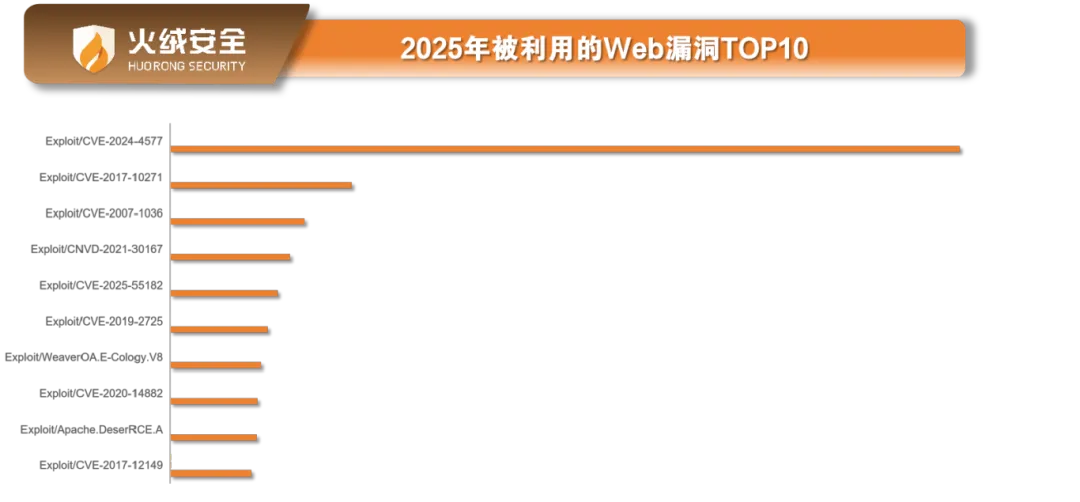 根据“火绒威胁情报系统”监测数据显示,2025年针对Web服务漏洞的攻击呈现上升趋势,同时也表明企业在Web服务安全防护方面仍需保持高度警惕,以应对持续存在的网络威胁。