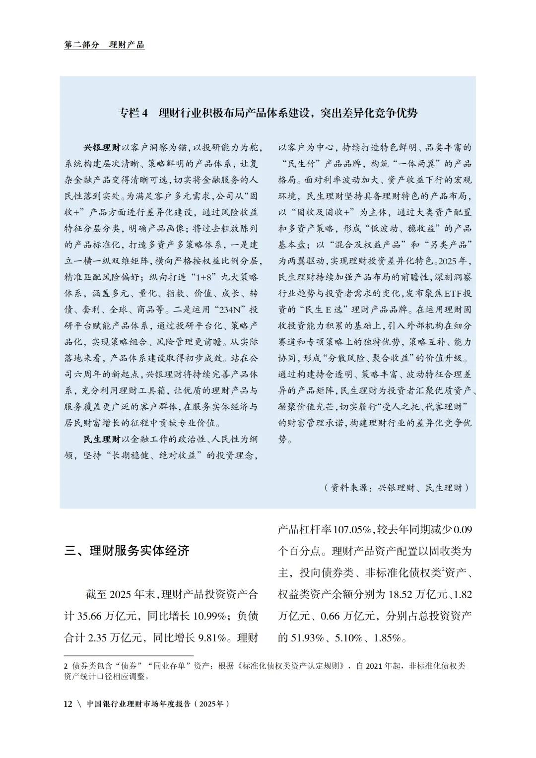 服务实体经济效能增强:理财产品通过投资债券、非标资产等支持实体经济资金规模约21万亿元,重点投向绿色债券、一带一路、科技创新等领域,体现金融与实体经济共生共荣。