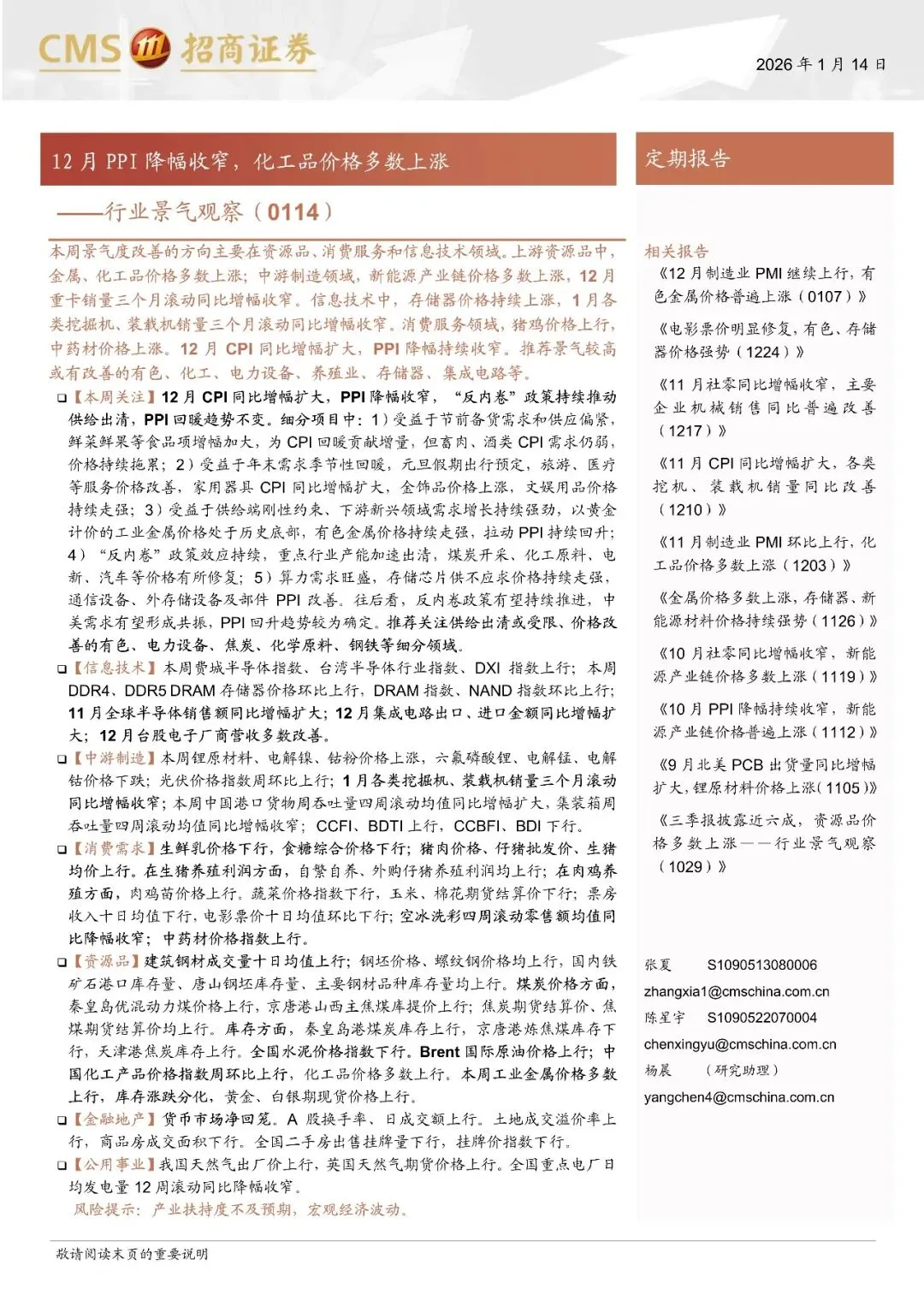 行业景气观察(0114):12月PPI降幅收窄,化工品价格多数上涨-260114-招商证券-32页