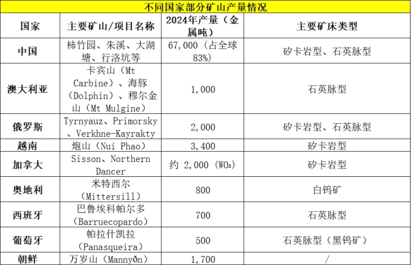3)塔吉克斯坦:马伊胡林矿(目标2030前)年产WO₃约15000吨。