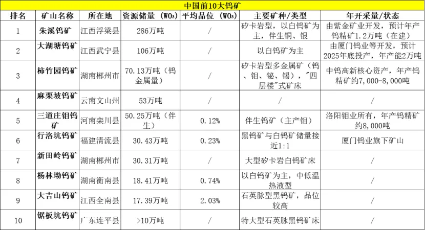 中国钨矿资源分布高度集中,江西和湖南两省的储量占全国一半以上,尤其是赣南和湘南地区,是核心产区。