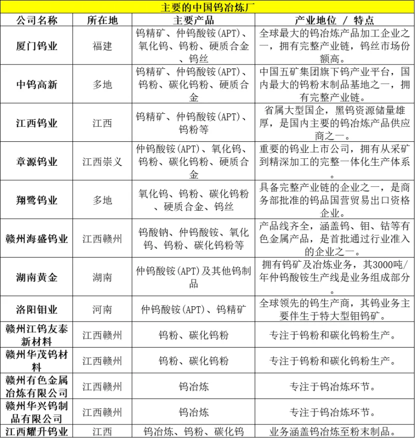 首先是产业高度集中:中国的钨冶炼产业集中度很高,头部几家企业如厦门钨业、中钨高新等,凭借完整的产业链和规模优势,占据了市场的主要份额。
