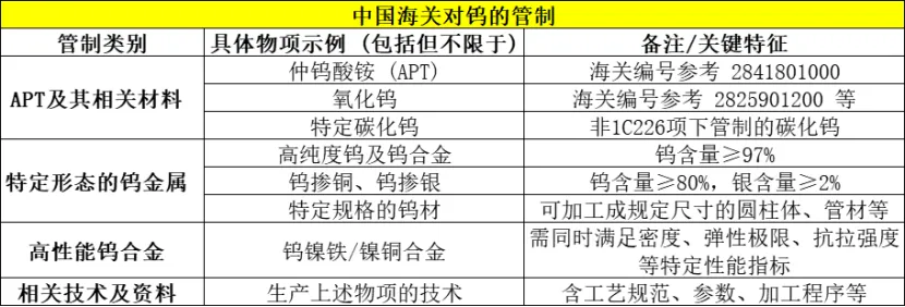 贸易限制:中国对仲钨酸铵(APT)的贸易限制核心是实施出口许可管制。这意味着出口APT必须事先获得中国商务部的许可,未经许可不得出口。这项规定是根据2025年2月4日生效的商务部、海关总署公告2025年第10号作出的。