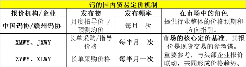 最后聊一下钨的定价机制。国内钨行业的定价机制有其特殊性,主要依赖几家核心企业和协会定期发布的指导价格。