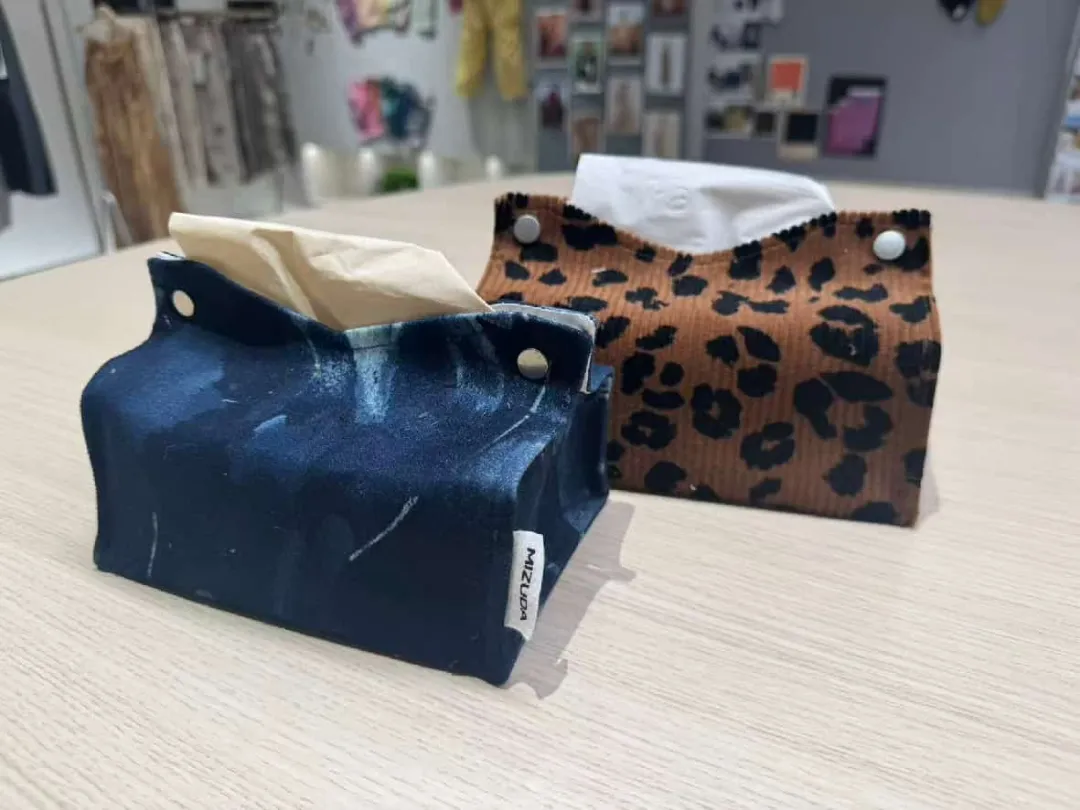 公司推动废旧面料再设计,开发帆布包、纸巾盒、坐垫等文创周边产品,体现“绿色循环”理念,增强品牌文化内涵与社会责任形象。