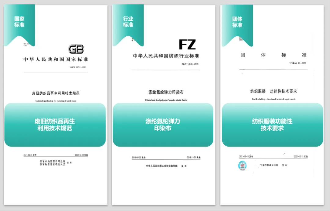 我们主持或参与制订的各级各类标准共有13项(其中国家标准4项,行业标准7项,团体标准2项),标准体系涵盖节水、能耗、再生利用、绿色供应链及碳中和等关键领域,从国家、行业、团体多层次推动纺织行业可持续发展。
