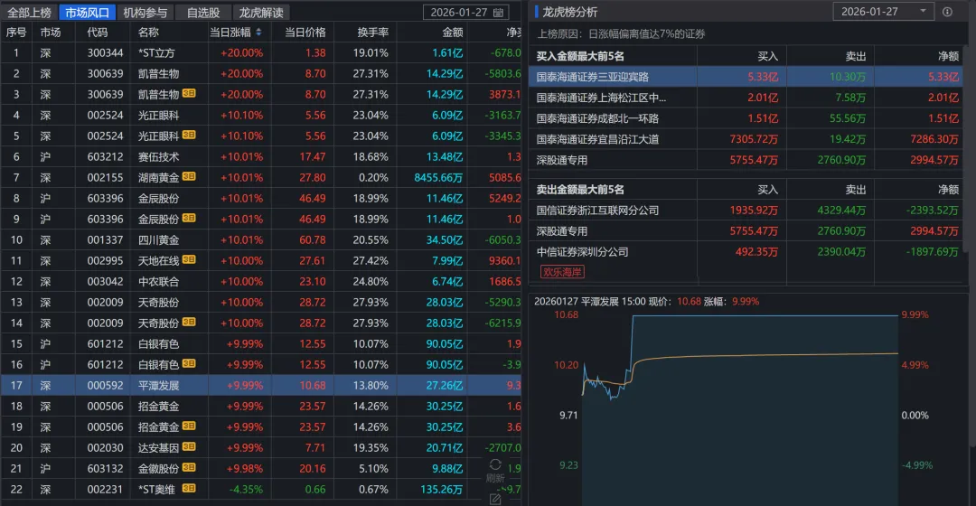 四川黄金(9天5板)、招金黄金(7天4板):趋势型连板,显示资金对黄金股后市依然乐观。