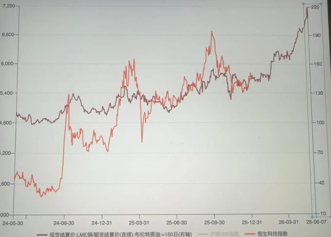 市场上有一种观点,利用铜油比来说明经济的周期,铜油比上升代表经济回暖,并借助该指标预测恒生科技的关系,截图大概如下