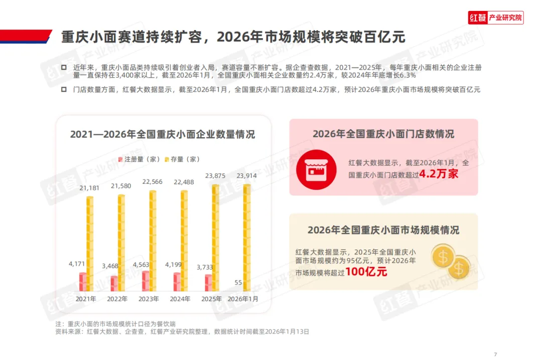 红餐产业研究院发布的《重庆小面品类发展报告2026》,基于红餐大数据、调研数据及专家意见,全面剖析了重庆小面赛道的发展现状。作为承载川渝地域文化的特色美食,重庆小面已从区域特色品类迈向全国化发展,展现出强劲的市场活力。