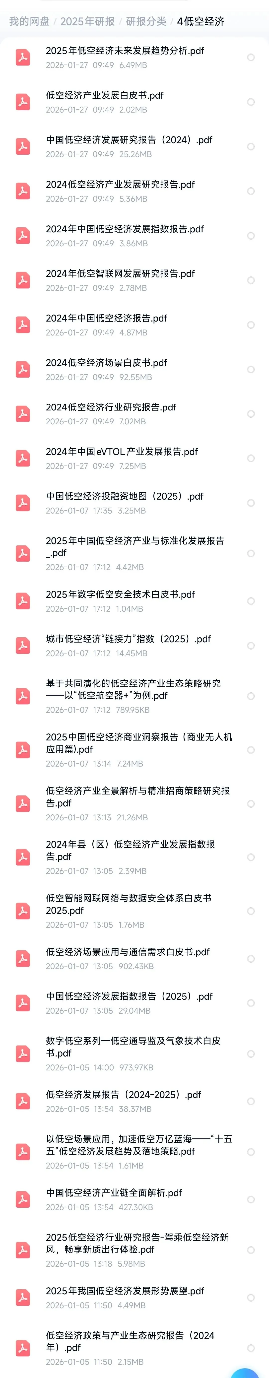 政策的东风、技术的成熟与资本的热捧,共同将低空经济推上了2025年的“年度风口”。以电动垂直起降飞行器(eVTOL)为代表的新型航空器,正孕育着一个万亿级的庞大市场。本文件夹全面覆盖了低空经济的产业链、商业模式、空域管理与基础设施建设。
