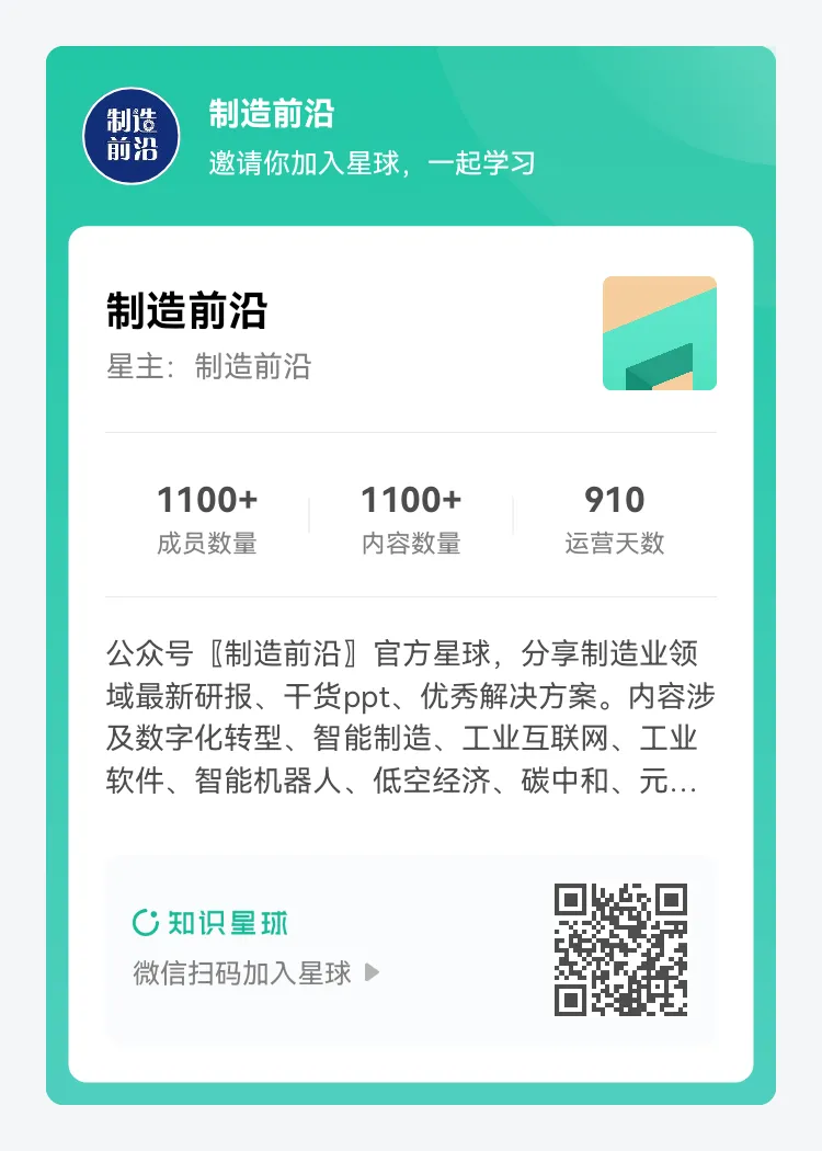 “制造前沿”期待在知识星球与您相遇,一同前行,洞见未来,共创价值。