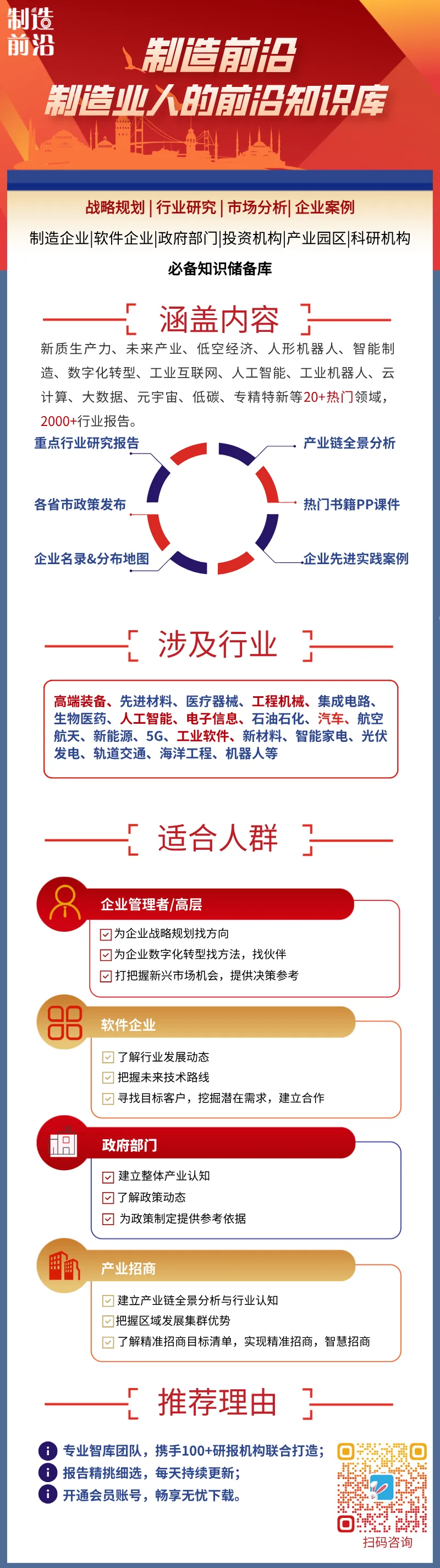 更多数字化转型、智能制造、人工智能、人形机器人、低空经济等重点行业最新进展和研究报告仅发布在『制造前沿』知识星球上,请扫码下载。