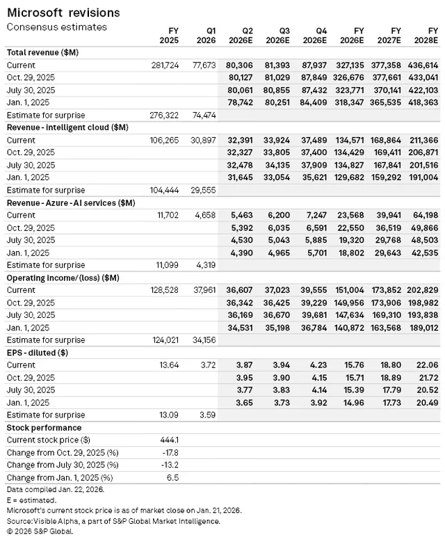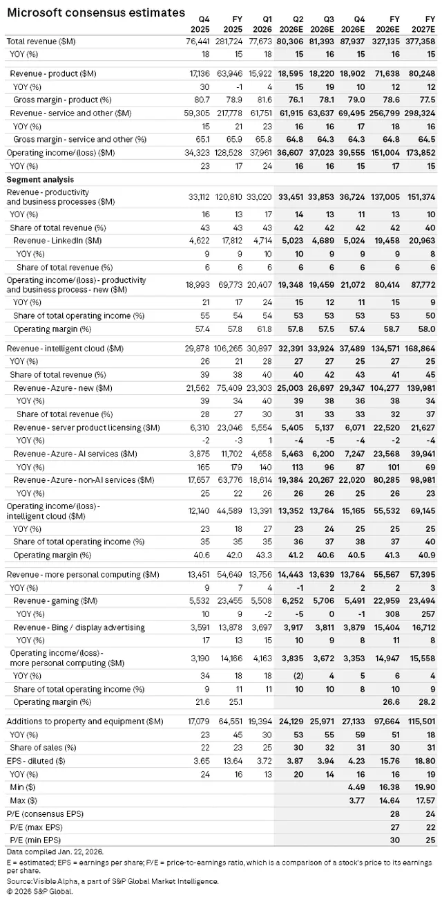 据金融数据平台 Visible Alpha 的市场一致预期,得益于核心业务板块表现稳健,市场对微软 2026 财年第二季度的总营收预期自 2025 年 7 月底以来一直保持稳定。