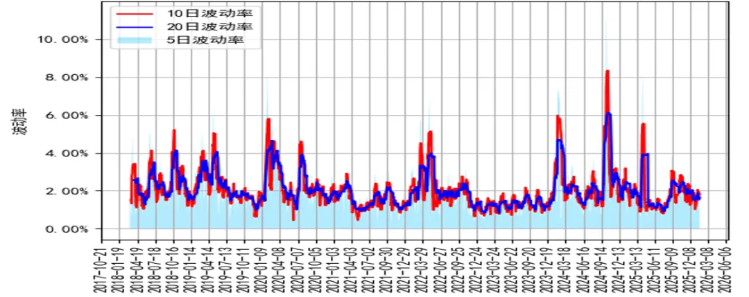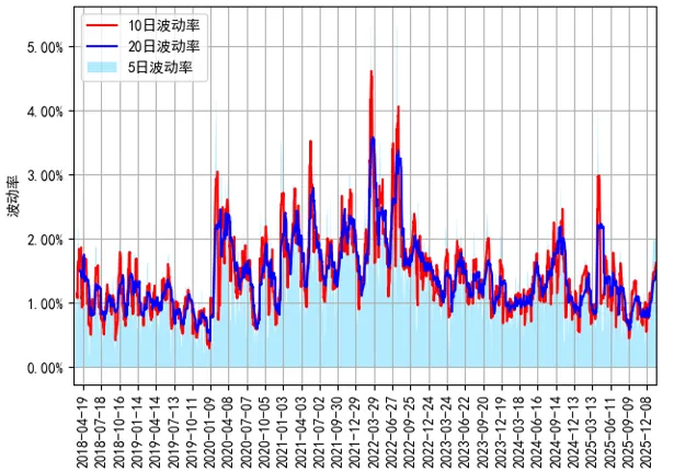 本周, 5日波动率、10日波动率、20日波动率均有所提升。