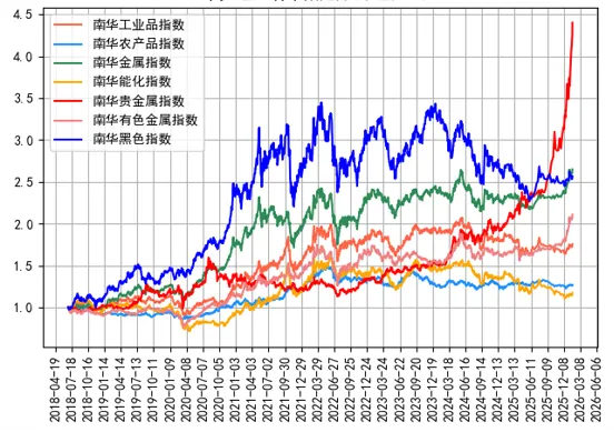 ◆商品市场本周全线上涨(除黑色外),贵金属一骑绝尘,黄金、白银同步大幅上涨并非单一因素推动,而是多重宏观与结构性力量叠加的结果,核心逻辑可归纳为 “宏观避险 + 货币环境 + 结构性供需 + 资金行为” 四重共振。从全年累计看,贵金属>有色>能化>黑色;
