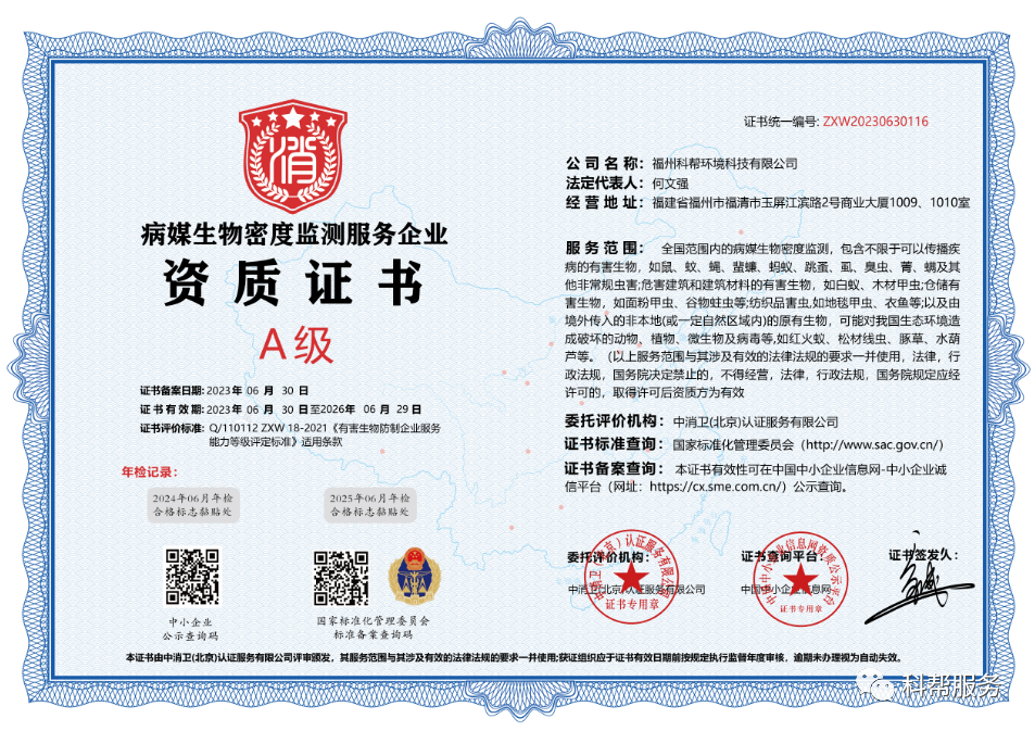 是经福州市爱卫会和疾控部门备案的专业杀虫公司,是北京病媒疾病预防控制中心会员单位。