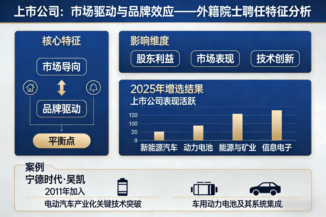 上市公司在聘任外籍院士时呈现出明显的市场导向和品牌驱动特征。这类企业需要在股东利益、市场表现和技术创新之间找到平衡点,因此在引进外籍院士时更注重其对企业市值、产品竞争力和行业地位的提升作用。