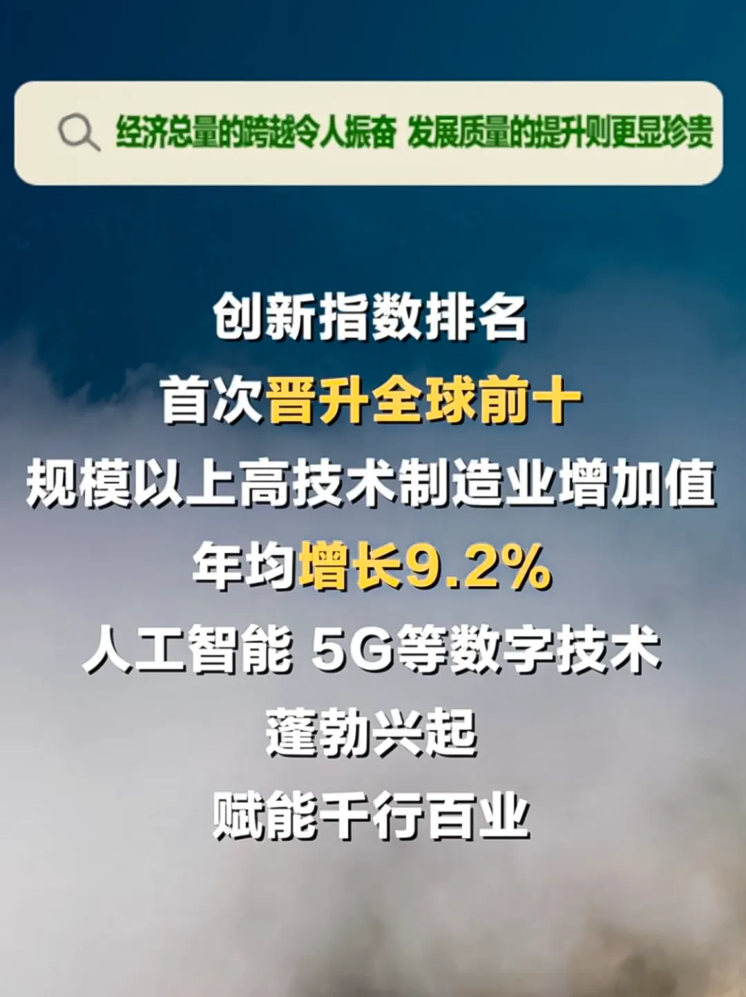 :“十四五” 期间中国经济总量实现 “四连跳”,从 110 万亿元攀升至 140 万亿元,新增的 30 万亿元规模堪比一个世界主要经济体的年经济总量。背后是粮食产量连续两年稳定在 1.4 万亿斤以上,制造业增加值连续 16 年居世界首位,服务业占比达 57.7% 等扎实支撑,这些让中国在应对国内产业转型阵痛和外部冲击时,拥有了更充足的缓冲空间和调整底气。 - 夯实高质量发展的转型成果