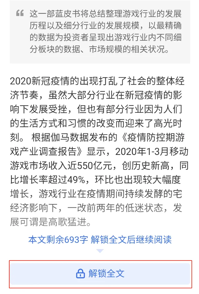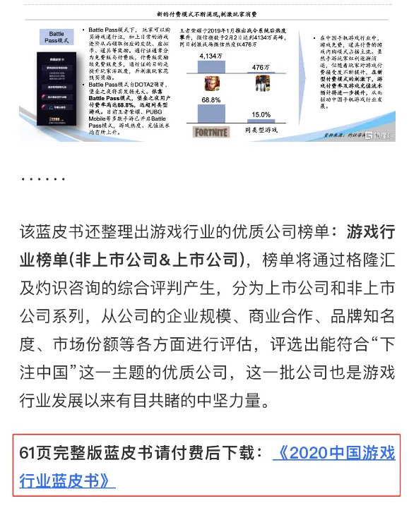 《下注中国·行业蓝皮书》是格隆汇在遵循“全球视野,下注中国”的发展理念之下推出的全新产品,每月发布1-2个行业的蓝皮书报告以及行业榜单,选择的行业包含市场热点、风口行业、周期板块等,力求给投资者最深入的行业分析,最权威的市场数据、最精准的市场调研。至今为止,已发布了三期蓝皮书,分别是中国5G行业蓝皮书、中国新冠疫情系列行业蓝皮书、中国游戏行业蓝皮书。每一期蓝皮书的发布都有大量的投资者前来咨询如何获取该蓝皮书,但由于报告内容的数据繁冗,格隆汇与CICI灼识咨询为了确保蓝皮书数据的专业性与准确性,均反复对数据模型进行检验,从而导致蓝皮书的上线推迟。但从今天起《下注中国·行业蓝皮书》正式从格隆汇APP上解锁,开始发售!由于游戏行业的投资者呼声甚高,因此格隆汇首先上线的是最新一期发布的《中国游戏行业蓝皮书》, 售价为198元,前两期发布的蓝皮书也会陆续上线。《中国游戏行业蓝皮书》购买途径如下: