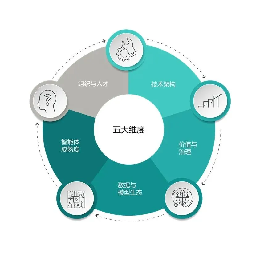 为帮助机构精准定位,我们构建了安永AI银行成熟度评估体系。该模型以“智能体”的进化为轴心,将银行AI化进程划分为五个阶段,从低至高依次为:试点探索、场景应用、流程重构、业务整合、超智能原生体。通过安永AI银行成熟度评估体系,对银行从数据与模型生态、组织与人才、技术架构、价值与治理以及智能体成熟度五个维度开展银行AI化进程评估。