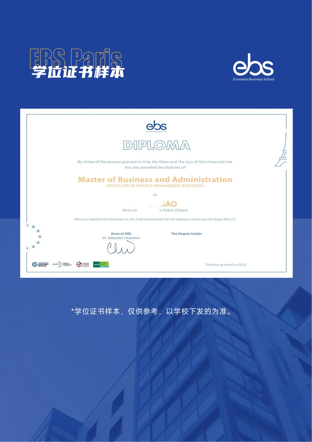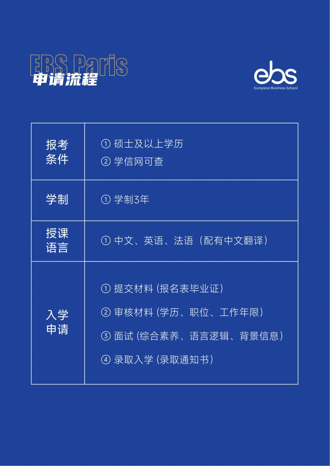 授课:线上学习(中文授课) 学制:3年