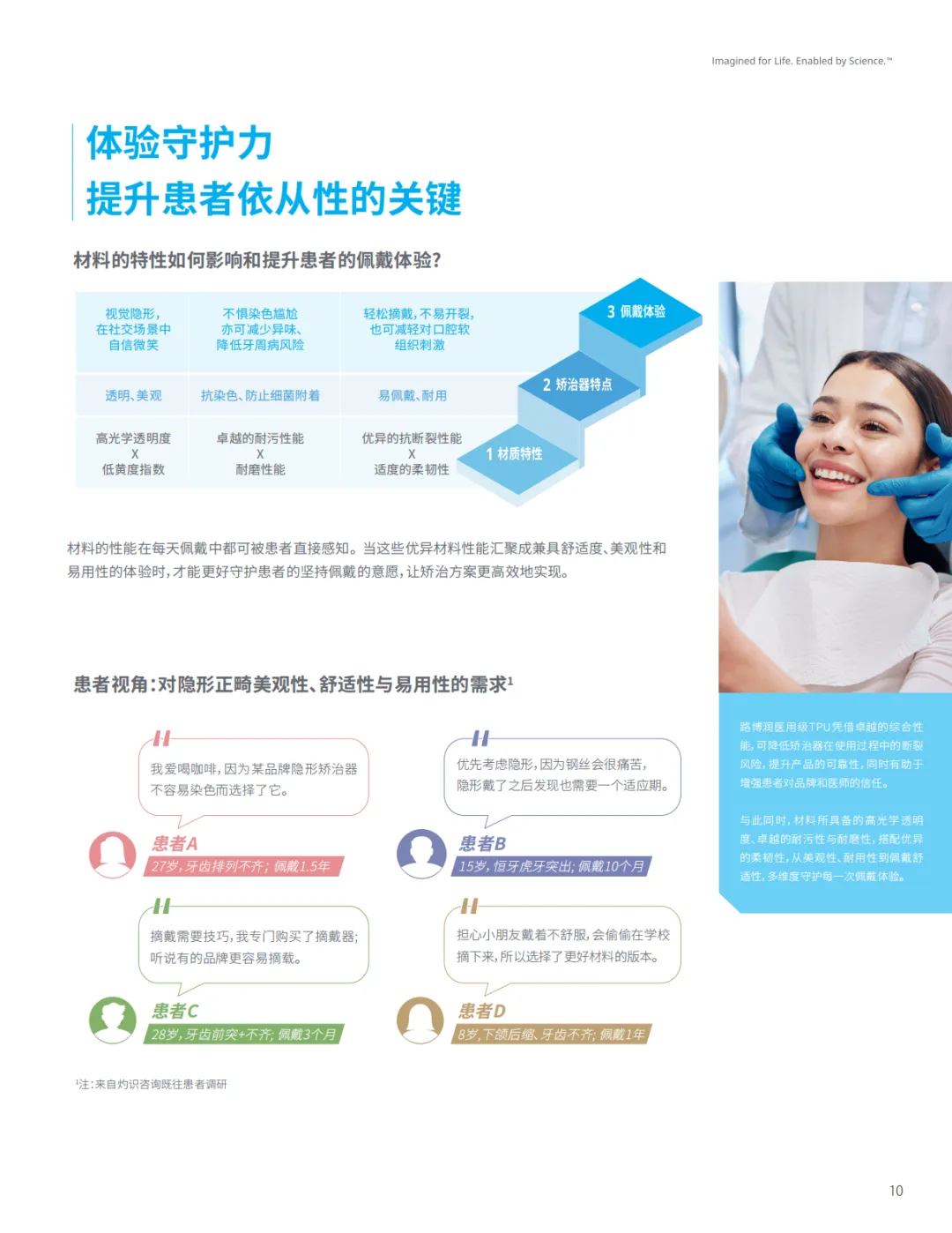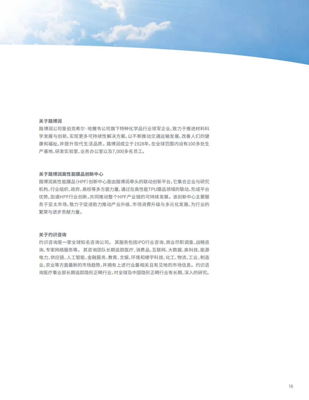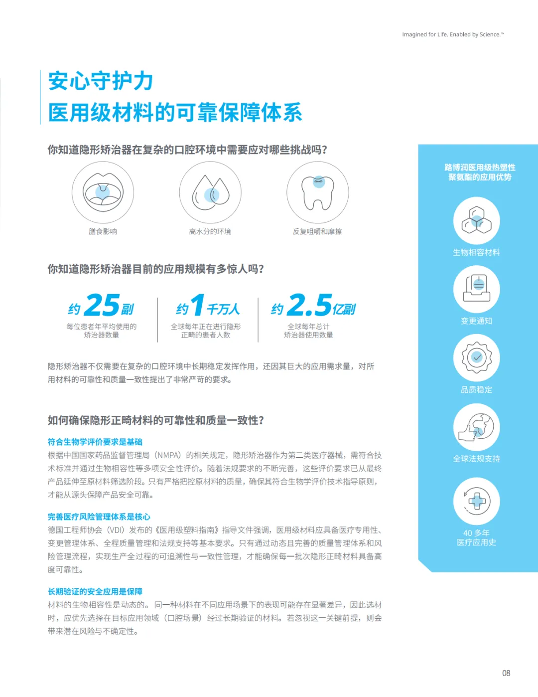 在这场持续近三十年的创新浪潮中,路博润始终与隐形正畸行业携手并进。作为热塑性聚氨酯(TPU)的发明者和医用级热塑性聚氨酯(TPU)的行业领导者,路博润凭借深厚的材料科学积淀和全球应用经验,持续与产业链伙伴协同创新,推动高分子材料在齿科领域的不断突破与落地;而灼识咨询作为领先的行业咨询机构,见证了中国隐形正畸第一股的诞生,并通过持续的产业研究和洞见发声,塑造了中国隐形正畸行业的认知框架,为资本市场提供了重要的参考坐标。