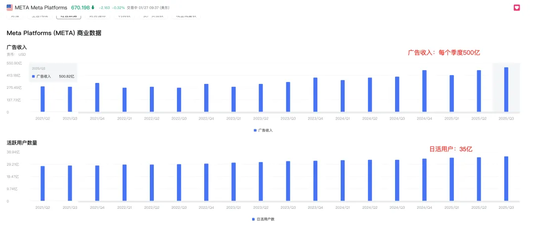 付费 AI 订阅服务:Threads Premium / Meta AI Pro/收购的manus公司提供的AI订阅能力。提供高级 AI 功能(如长文本生成、文件分析);目前规模极小(<1 亿美元/季),但未来可能成为新增长点。