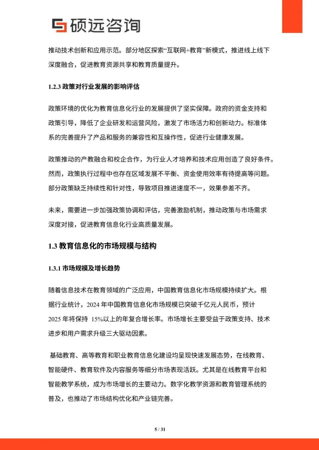 《2025年中国教育信息化行业研究报告》由说元咨询发布,系统梳理了中国教育信息化行业的发展脉络、市场规模、技术趋势与竞争格局。报告指出,在政策支持、技术进步与需求升级的共同驱动下,中国教育信息化市场正迈向智能化、个性化与深度融合的新阶段,市场规模持续扩大,预计2025年将保持15%以上的年复合增长率。