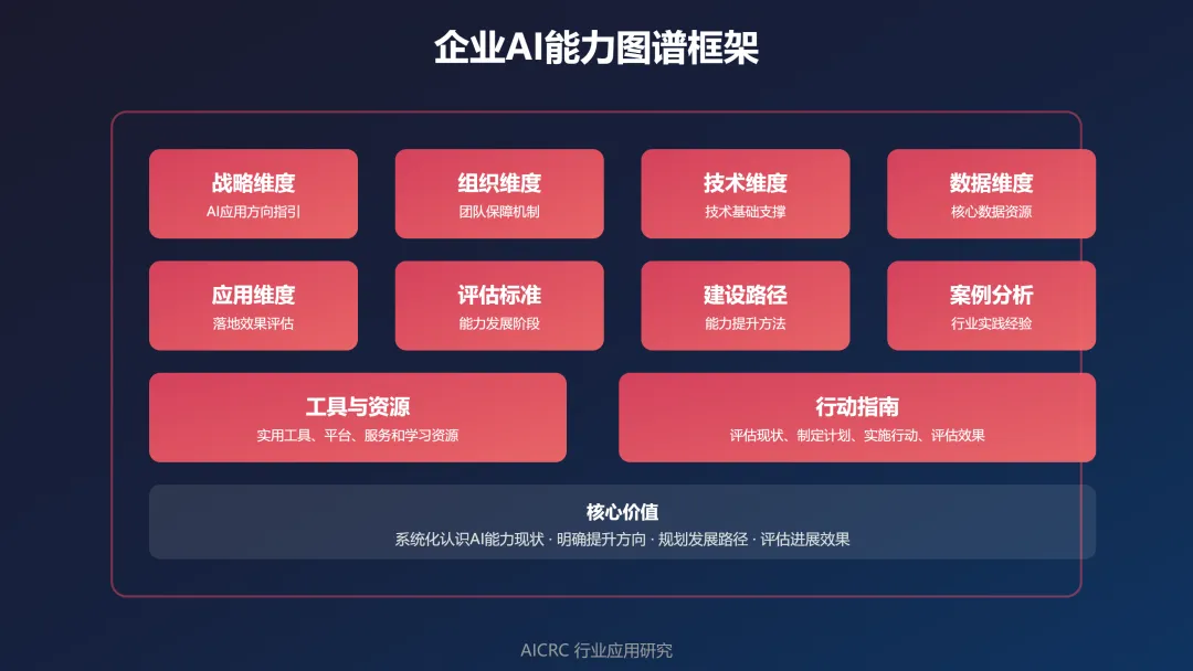 就像体检报告能告诉你身体的健康状况,AI能力图谱能告诉你企业的AI应用水平如何,哪些地方强,哪些地方弱,下一步该怎么改进。