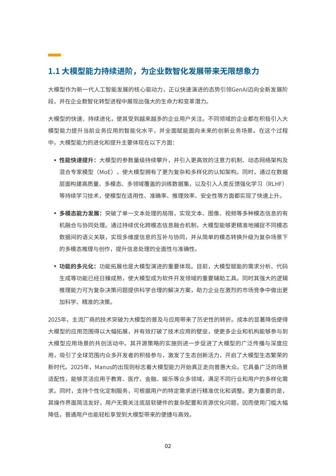 《企业 AI 开发与技术实践白皮书 2025》聚焦 GenAI 时代企业智能化发展,系统剖析行业趋势、实践路径与挑战解决方案。