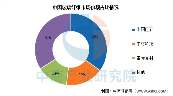 目前,中国玻璃纤维市场格局明确。截至2025年上半年,中国巨石产能占比约为35%,中材科技占比约为17%,国际复材产能占比约为14%。