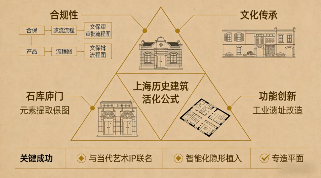 1. 合规性为绝对前提:历史保护建筑的改造,需与文保、规土部门进行最深度的沟通,其复杂程度和时间成本必须充分预估。