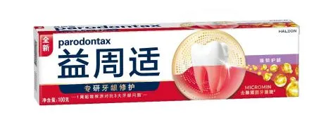 摒弃传统的PET覆膜银卡,直接使用可回收再生的转移镀铝纸,包括“益周适品名,牙齿牙龈形象,金球串"在内,纸盒上采用了业内独有的多个猫眼设计效果,同时在精致的印刷表面附上逆向光油工艺,既实现了高档独特的闪亮效果,又保证印刷牢度,还确保了纸盒可回收再生。纸盒上印有明显的可回收再生标识,提示消费者该纸盒可回收再生。