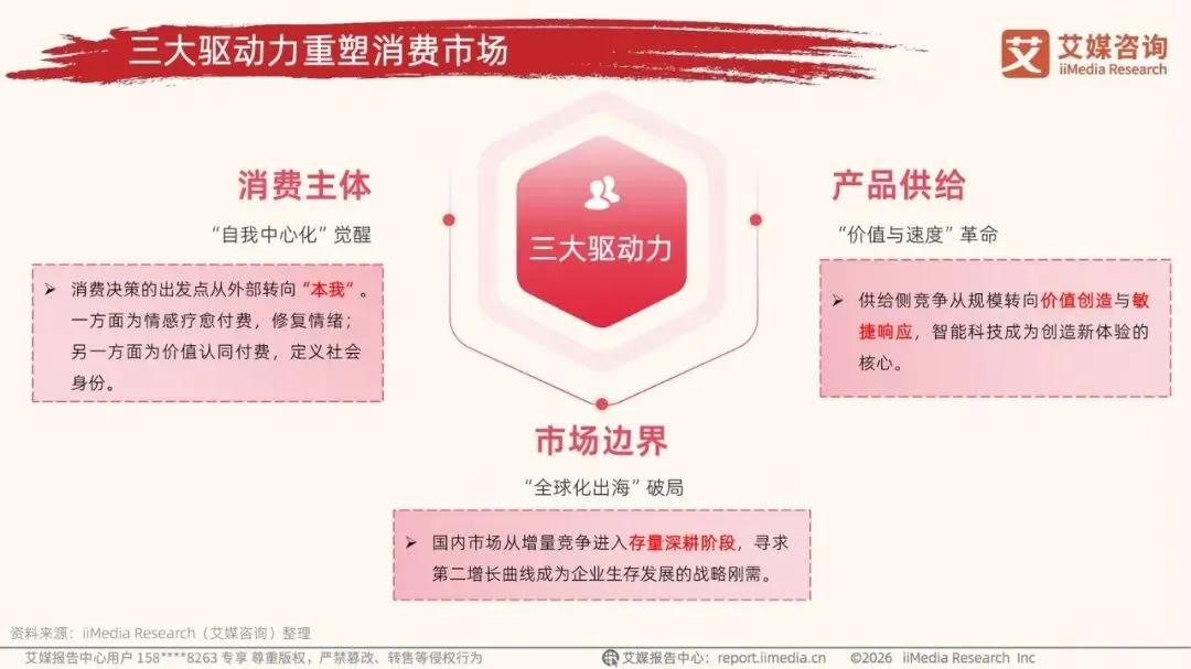 报告提炼出重塑当前消费市场的三大核心驱动力。第一是消费主体的“自我中心化”觉醒,消费决策的出发点从外部转向“本我”,情感共鸣与价值认同成为核心驱动力。第二是产品供给的“价值与速度”革命,竞争焦点从规模转向价值创造与敏捷响应,智能科技成为创造新体验的关键。第三是市场边界的“全球化出海”破局,在国内市场进入存量深耕阶段后,寻求第二增长曲线成为企业战略刚需。这三股力量交汇,共同催生了2025年新消费市场的三大核心赛道。