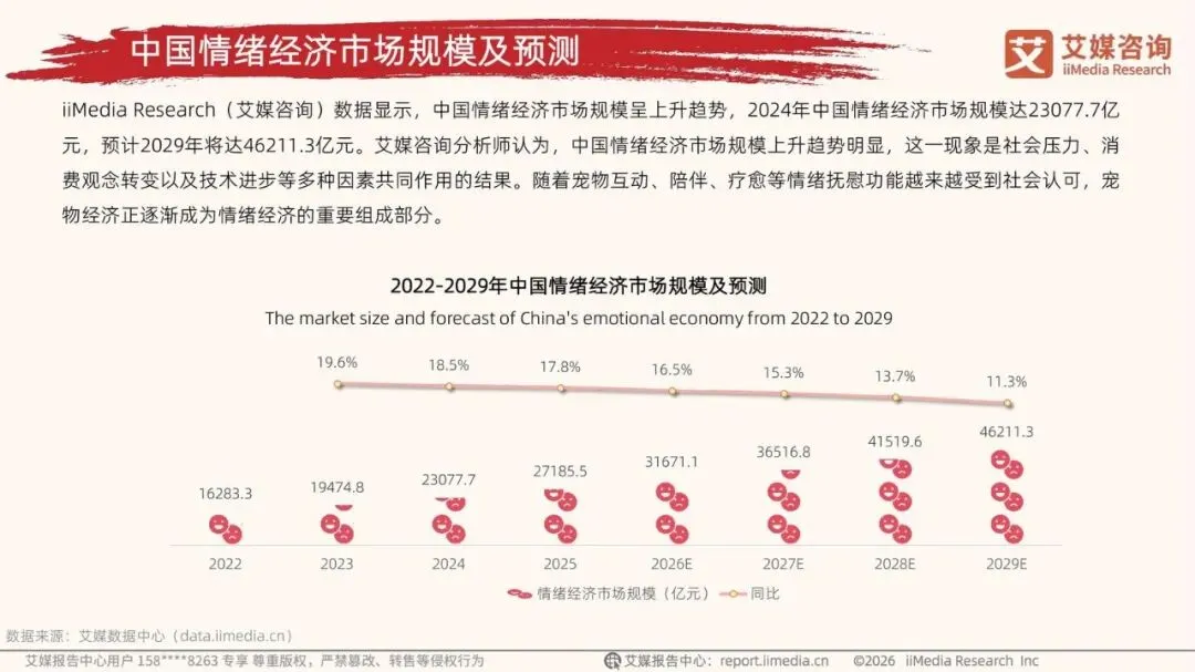 报告将2025年的新消费热点归纳为三大赛道进行纵深分析。首先是情绪经济赛道,其核心是消费重心从功能价值转向情绪价值。消费者为情感共鸣、心理慰藉和自我认同付费。该赛道可细分为悦己型、社交型和成瘾型,其中宠物经济和潮玩经济是典型代表。报告预测,中国情绪经济市场规模将持续增长,从2024年的约2.3万亿元增至2029年的约4.6万亿元。