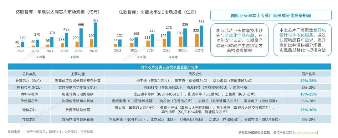 受益于智能电动汽车市场的快速增长,车辆对于各类半导体的需求逐渐提升。车规级芯片的市场增长不仅体现在座舱、智驾等核心SoC芯片领域同时体现在通信芯片、功率半导体等细分基础应用领域。相较于核心的SoC芯片,OEM对于组分基础领域的芯片采购逻辑由"性能优先"转向"成本可控+交付稳定+本地服务",因此基础型规芯片成为国产化率先突破口。