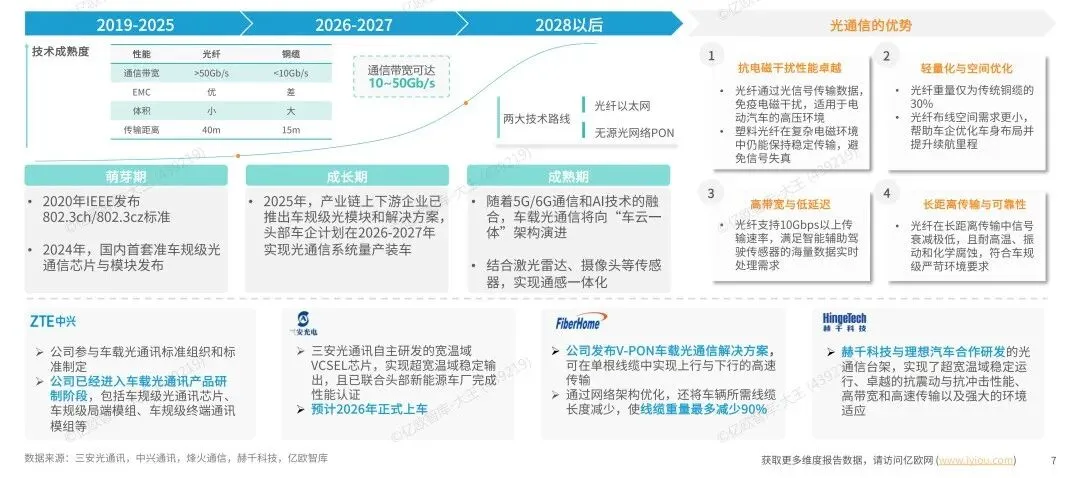 亿欧汽车研究院认为,车载光通信有望加快对传统车载以太网的替代,2026年有望成为光通信上车元年。