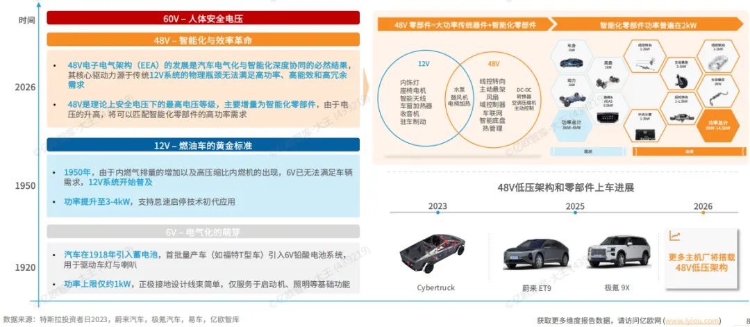 趋势五:48V 低压架构将在2026年逐步上车,支撑高功率智能化零部件的应用