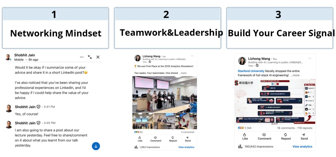 她的理念让我印象极为深刻,她会主动把课程笔记、项目成果、学习心得分享到 LinkedIn 等平台,不仅梳理了自己的思路,更吸引了行业人士的关注,意外收获了交流与合作的机会。这种“勇于分享、打造个人品牌”的意识,让她在众多学生中快速脱颖而出。